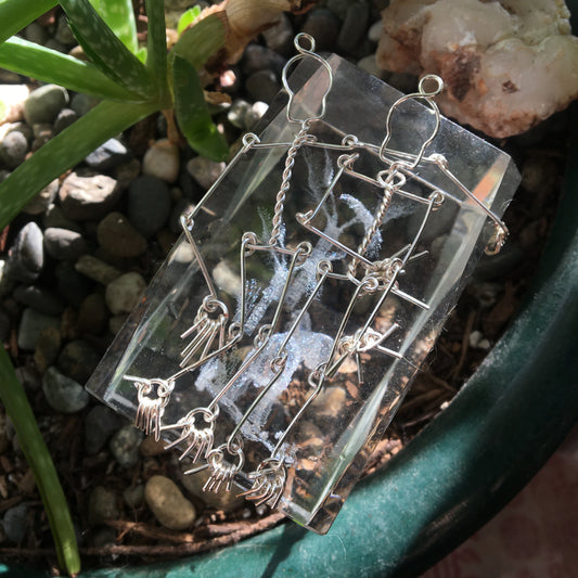Silver Dangly Wire Wrapped Skeleton Earrings - Wire Art Earrings - Unique Halloween Earrings - Halloween Jewelry - Skeleton Wire Weave Art