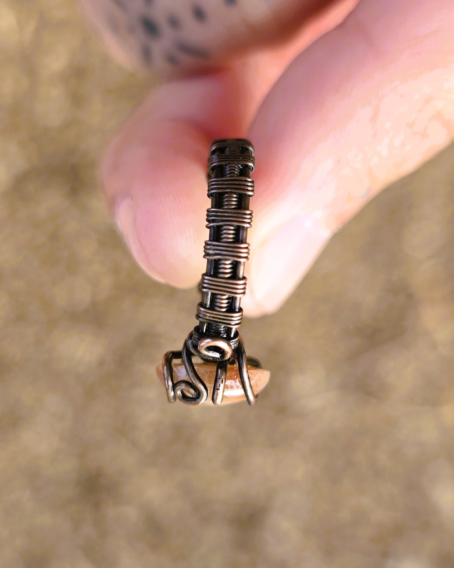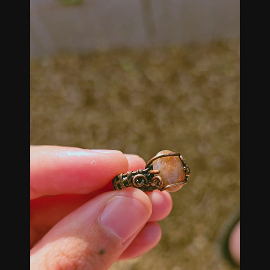 Embrace your free spirit with this Sunstone Antiqued Copper Ring, size 6 1/4. Handcrafted with rustic copper wire wrapping, it showcases the warm, radiant glow of sunstone—a stone known to inspire joy and vitality. This earthy ring adds a unique, boho vibe to any outfit, perfect for those who love nature-inspired, soulful jewelry with a vintage touch.